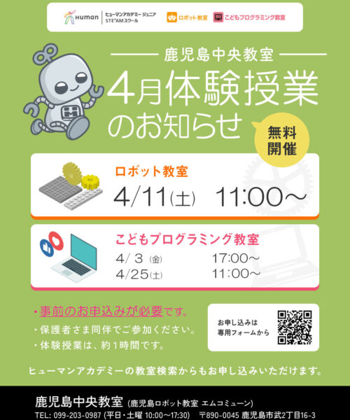 鹿児島中央教室は鹿児島市初のロボット教室。