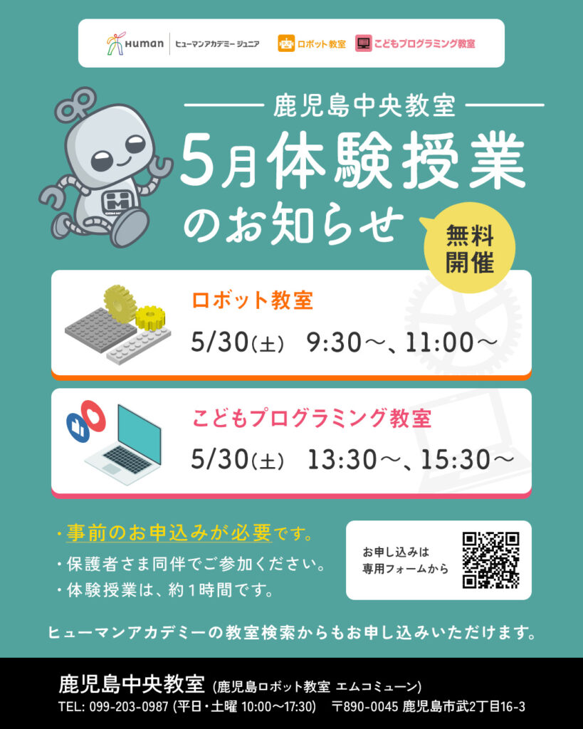 2026年5月【ロボット・こどもプログラミング】体験授業(無料開催)のお知らせ